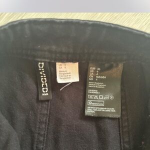 This chic black mini skirt from H&M features a skater style with a subtle slit, perfect for both work and casual occasions. Its flattering circle cut and structured fabric offer a stylish silhouette that sits comfortably at the waist.