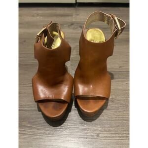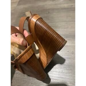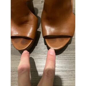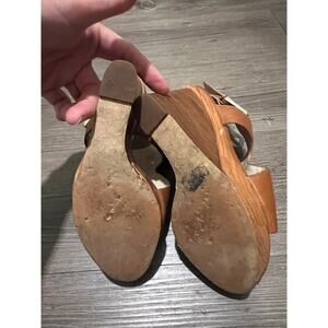 In great condition. Worn a few times. Wedges part is in great condition. Leather top is clean couple light scuffs. Only flaw is the toes prints on the shoe as pictured. Light wear on the sole.
