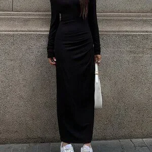Website: https://thecommense.com/products/off-shoulder-ribbed-long-sleeve-knit-long-dress