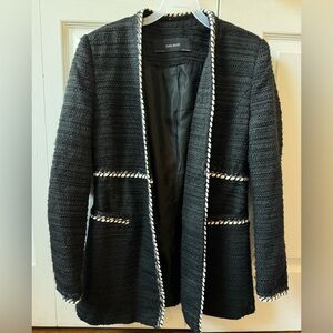 ZARA BASIC wool blend black blazer with white trim (M)