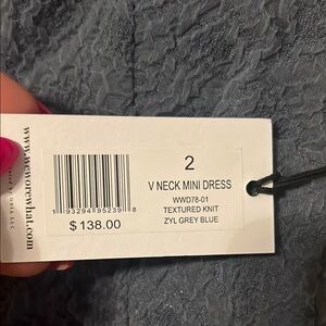 This chic blue mini dress by WeWoreWhat is perfect for a cocktail night out, featuring a sleeveless design with a plunging neckline. Its A-line silhouette and structured fabric create a flattering and elegant look, making it a versatile addition to any wardrobe.