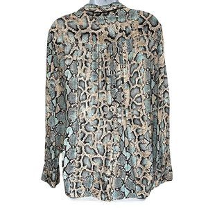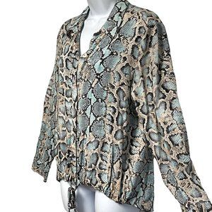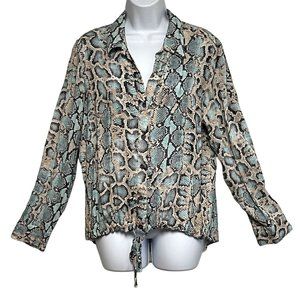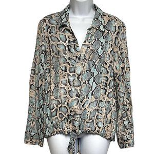 Karen Kane Womens Snakeskin Blouse Tie Front Long Sleeve Size XL