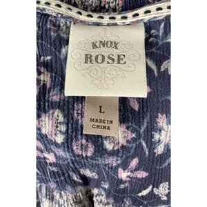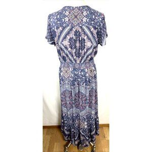 Knox Rose Midi Dress Size Large Rayon Short Sleeve Navy Blue/White Floral Boho