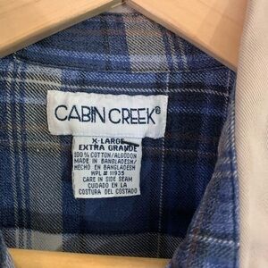 Women’s Cabin Creek blue plaid collared long sleeve button down flannel shirt size XL Preloved good condition #flannel #plaid #utility