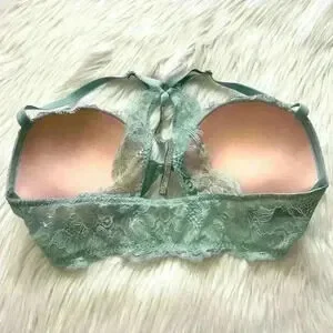 Lace push-up bra. Padded with underwire. Front clasp and adjustable straps. Back band is stretchy.