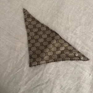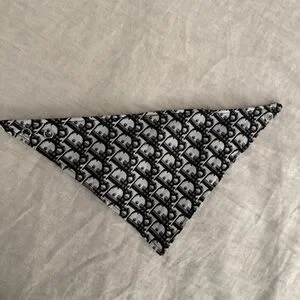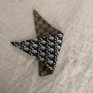 Reversible pet bandana, Gucci print one side dior print on the other side. Top length is about 12.5 inches across. Perfect for a small pet!
