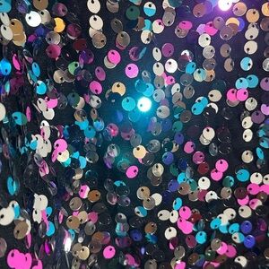 Description- beautiful rainbow sequined wide leg pants, lined, side zipper, no pockets.