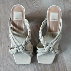 Step out in style with these Dolce Vita sandals. Featuring a chic braided design, these cream sandals are perfect for any occasion. Elevate your wardrobe with this elegant footwear choice.
