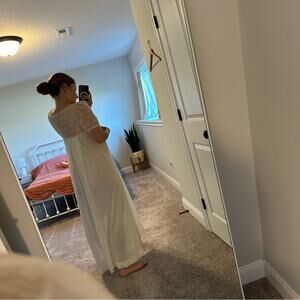 I adore this super stunning true vintage white cream lace floral tie short sleeve maxi dress/slip/night out/chemise