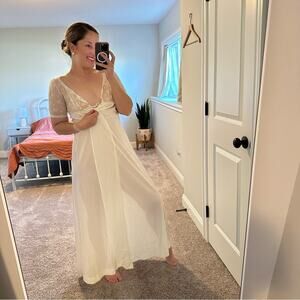 Vintage Gossard Artemis Cream Lace Nylon Slip Maxi Dress XS