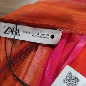 NWT Flowy Vibrant ZARA Women's Red Multicolor Tie Dye V Neck V Back Tie Beaded Side Ties Maxi Dress Size S