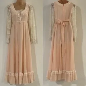 RARE Gunne Sax 1960's Full Skirt Boho Long Lace Up Corset Ruffled Maxi Dress
