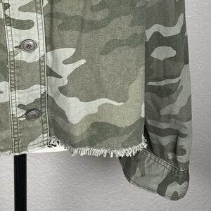 Aeropostale Sz L Cropped Cargo Utility Jacket Camo Green White Raw Hem