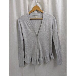 Hinge women's size small light gray cardigan sweater with ruffle detail v neck H1