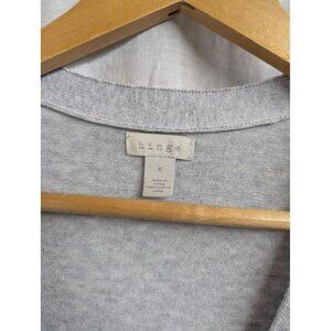 Hinge womens size small light gray cardigan sweater with ruffle detail v neck H1