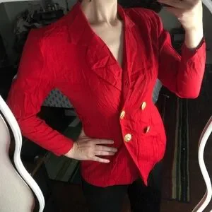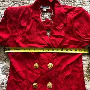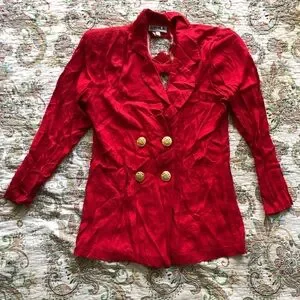 Unique Red vintage blazer w/double-breasted gold buttons keyhole back blazer