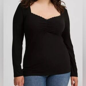 #2497 - TORRID Super Soft Sweetheart Cinch Lace Trim Tee Deep Black