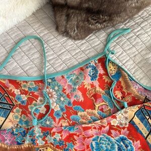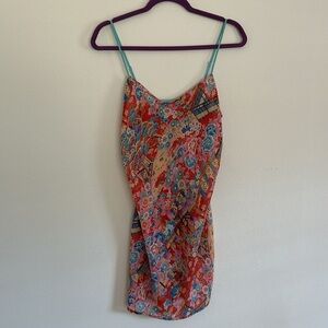 Cute semi sheer Asian Floral Multicolor Summer mini slip Dressββ