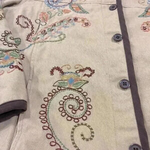 Denim & Co. Light Brown Embroidered Cotton Boho Button Down Jacket Women’s Sz M