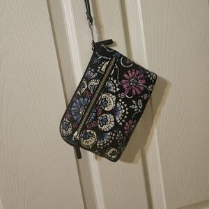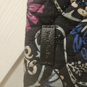 Vera Bradley large tote. has zipper top and six slip pockets inside. has zipper pocket on outside. comes with a wristlet. smoke free home. tote is like new hardly used. the wristlet is used but very good condition no tears.