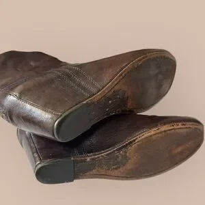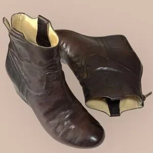 Elevate your style with these Frye brown leather wedges, featuring a sleek and minimalist design. The 3-4 inch wedge heel offers both height and stability, while the side zipper ensures easy wear. Perfect for versatile occasions, these boots combine elegance with everyday comfort.