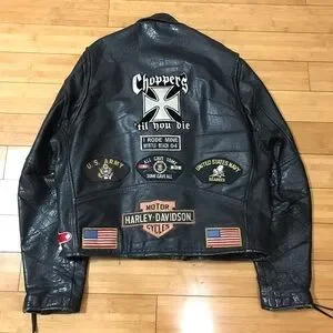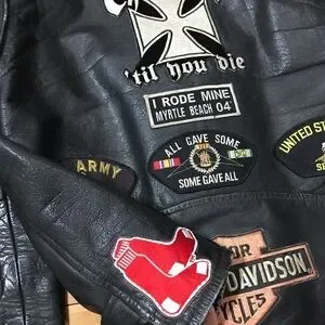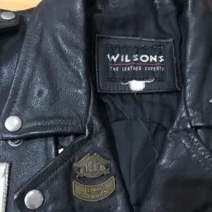 VTG Wilson’s Harley Davidson Owners Group Patches Leather Jacket .