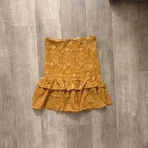 Spell & The Gypsy Lioness Ruched Skirt Ruffle Smocked Caramel Tan S