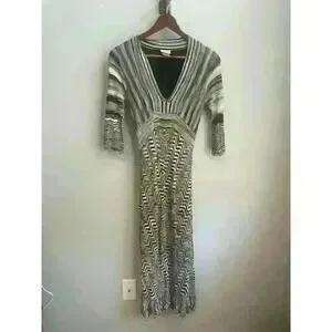 KAREN MILLEN 1 Vintage Grey Multi Zig Zag Knit Croche Midi Jumper Dress