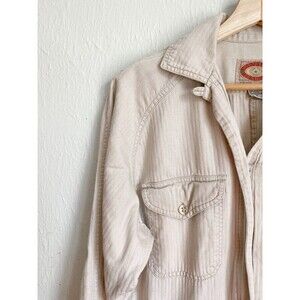 This vintage Banana Republic jumpsuit is a perfect addition to any retro wardrobe. Made from 100% cotton canvas fabric, it features a collared neckline, long sleeves, and a button closure. The beige jumpsuit is a one-piece that comes in a relaxed fit and features pockets and an easy-care fabric that makes it machine washable.