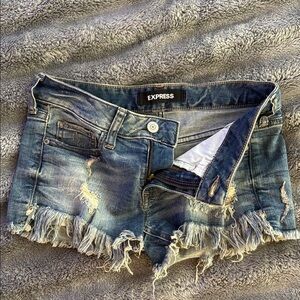 Express SHORTIE Relaxed Low-Rise distressed denim shorts. Run a little big, 2” inseam.. Stretch material.