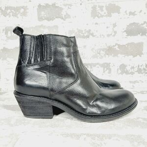 New Sofft Ardmore Black Leather Round Toe Block Heel Bootie i763