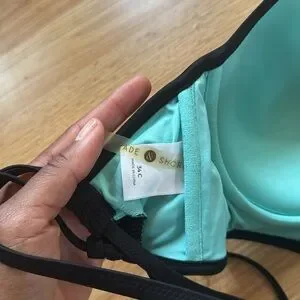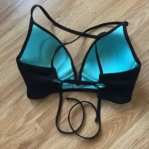 Stylish black swim top in side 34C with strappy back design and built in padding. Perfect and flattering for a day in the sun.