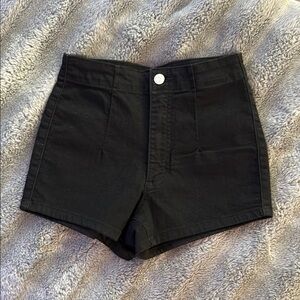 These sleek black high-waisted shorts from Wild Fable offer a minimalist design with a smooth, uniform finish. Crafted for a fitted look, they are perfect for adding a touch of sophistication to your casual wardrobe. 2” inseam.