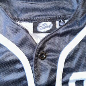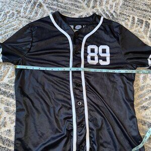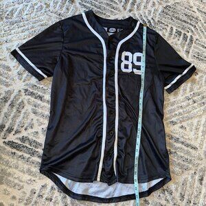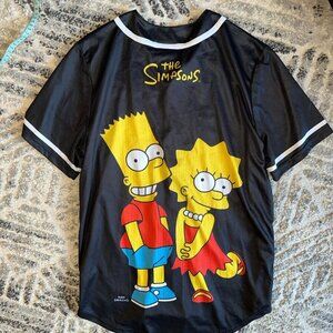 This black button-up jersey is a must-have for any Simpsons fan! Featuring Bart and Lisa Simpson, this top is perfect for casual wear and showcasing your love for the iconic TV show. The V-neckline and short sleeves provide a comfortable fit, while the regular size type ensures a great fit for most women. The Simpsons 89 button-up top is made for women and comes in size small. Its basic style and black color make it easy to pair with any outfit. Whether you're a fan of the show or just looking for a cool top, this Simpsons 89 button-up jersey is perfect for you!