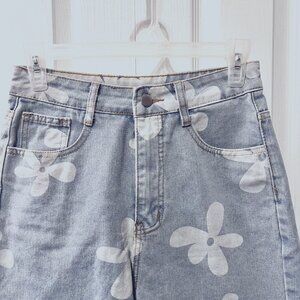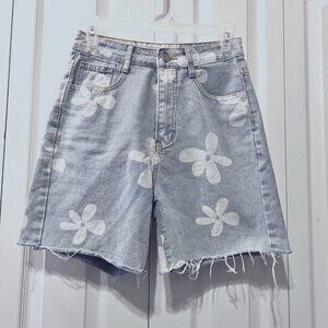 Shein Flower Power 70"s Hippie Print-Jean/Denim Shorts-Floral-Sz. XS-Distressed