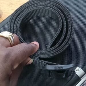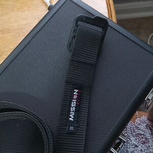 Mission Elite durable black tactical belt with a sturdy buckle. Ideal for outdoor activities.