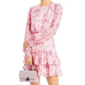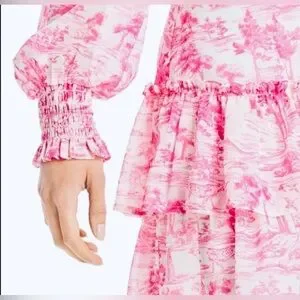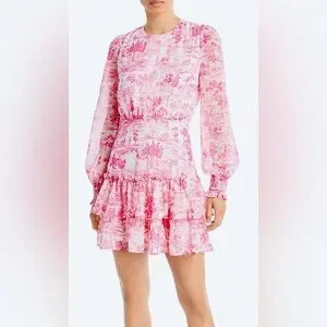 NEW!! Bloomingdale’s exclusive 💕💗 AQUA Toile Printed Ruffled Mini Dress, Sz Med.