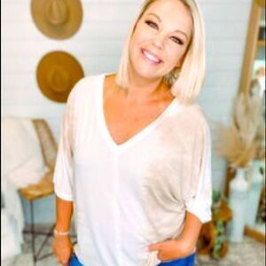 Brand New Pol V Neck Taupe, Cream Large Shirt