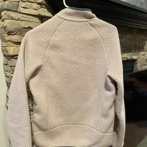 Stay cozy with this stylish beige fleece jacket. Perfect for chilly days.