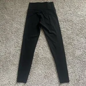Item name: black goals workout leggings with velvet striped details. 7/8 length. High waisted.