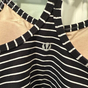 Lululemon Women’s 6 Power Y Tank built in bra black and white stripe
