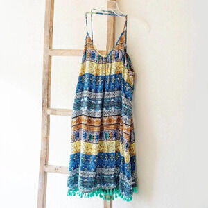 UMGEE SUNDRESS Sz Large MULTICOLOR POMPOM TASSEL SWING SWIM COVERUP BOHO
