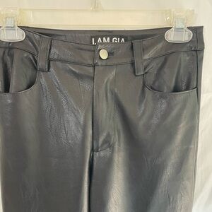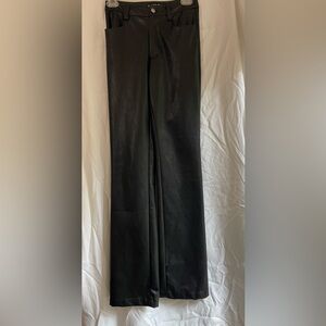 Stylish black wide-leg leather pants. Perfect for a chic look.