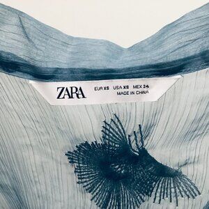 Beautiful blue Zara embroidered maxi coverup. V-neckline and short sleeves. Twenty-one inch side slits. Excellent condition.