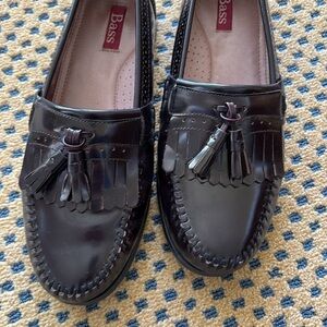 Step out in style with these elegant wine color loafers from Bass. Lightly worn. Perfect for any occasion, these shoes offer both comfort and sophistication.