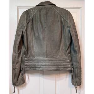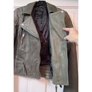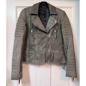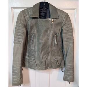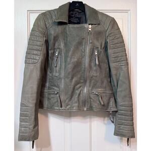 All Saints Green Distressed Leather Moto Biker Jacket Size US 8