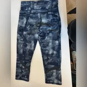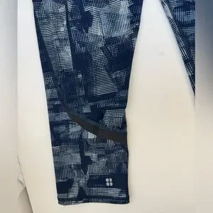 Sweaty Betty Leggings Blue White Grid Pattern 7/8 Length M