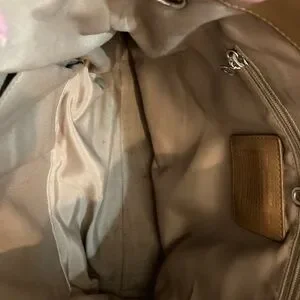 Super cute! See pics for condition. Clean overall. I have carried it has zippered pocket interior and slip pockets and 2 side lock pockets. Lots of life left. Strap looks good!