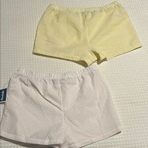 Set of two striped shorts in yellow and pink. Features embroidered details.