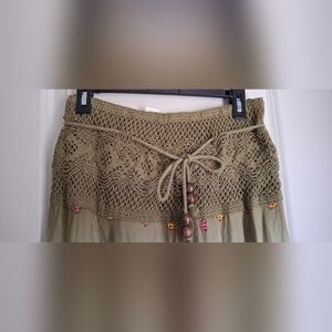 Roommates Y2k Embroidered Olive and Cream Skirt Sz L Hippie Gypsy Boho Lace Tass
